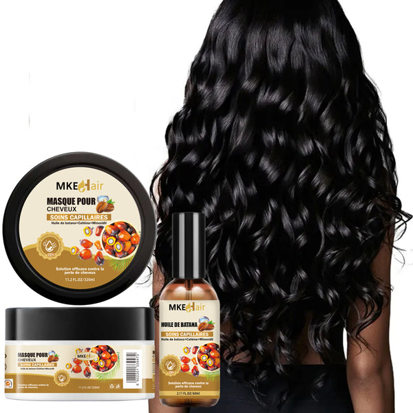 Le Kit Croissance Cheveux Magique utilise l'huile de Batana pour renforcer vos cheveux et prévenir la chute. Obtenez des résultats visibles et retrouvez confiance en vous.